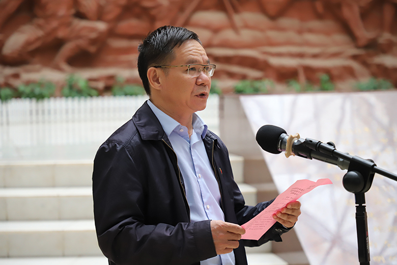 梁福沛在致辞中向基地的正式挂牌表示热烈祝贺,对关心、支持和参与实践教学基地建设的崇左市委宣传部副部长黄智庭及相关工作人员表示衷心感谢。他指出,实践教学基地的落成,是认真贯彻落实党中央号召,深入开展党史学习教育的具体体现,也是大力推进思想政治教育质量提升工程,促进课程育人、实践育人、文化育人建设的重要成果,标志着我校与地方“共建”“共育”“共享”的思政平台建设水平又登上一个崭新的台阶,思想政治理论课实践教学又迈出了坚实的一步。他强调,学校思政工作者要充分利用实践基地,完善教学方法,丰富教学内容,组织引领广大青年学生在基地开展实践学习,把老一辈无产阶级革命家在龙州起义的奋斗精神、奉献精神和红色基因不断传承下去,为中华民族伟大复兴积蓄磅礴力量。梁福沛希望双方以此为契机,把实践教学基地打造成永利集团88304官网集团与崇左市的“连心桥”,在人才培养、科技创新、产学研结合、社会实践等方面加强合作交流,从而实现良性互动与合作共赢,在全面建成小康社会的道路上并肩同行,共创佳绩。
