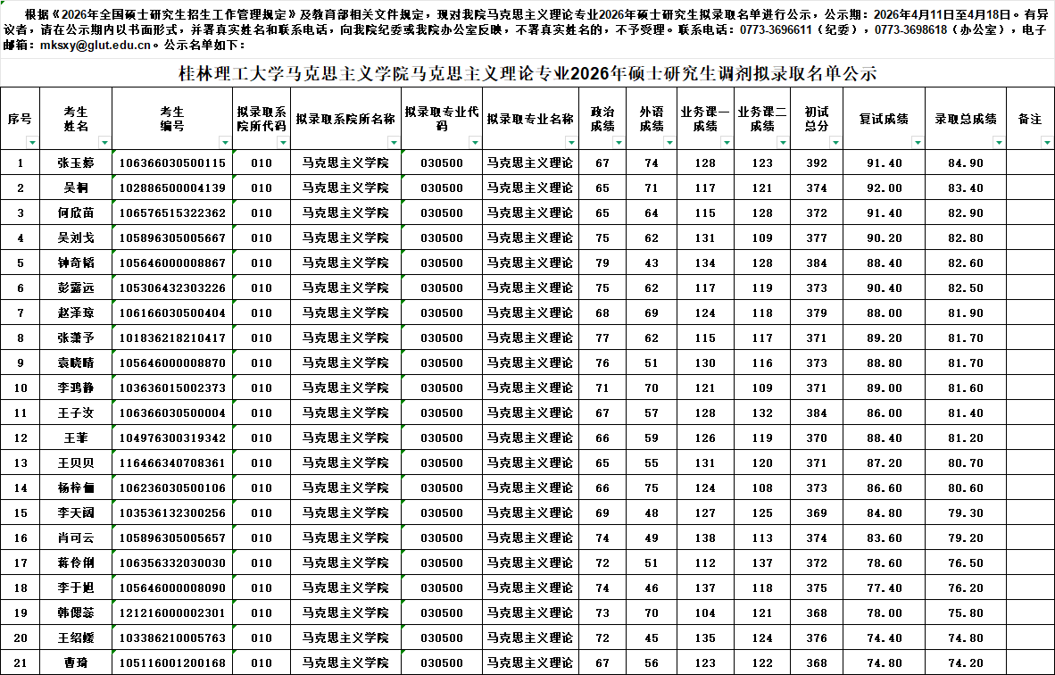 根据教育部及我校相关文件规定,现将永利集团88304官网集团复试拟录取名单(调剂)进行公示。公示期7日,如考生对复试录取名单有异议,请与永利官网办公室联系,联系电话0773-3698618。